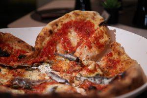 We continue with a “Scrocchiarella Napoli Dop” with PachinEat datterino tomato sauce, mozzarella “Caseificio il Casolare”, anchovy fillet from Sciacca Turturici hand-boned in olive oil, Sicilian capers and fresh oregano from Grotte: a joy for the hands in eating it, persuasive, enveloping and fun. The inspiration: “One evening I overheard a guy tell his wife that ‘she liked thin pizza’!”