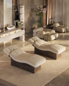 “I believe it is essential to travel because I want to see firsthand the realities with which I interact, the environments that I am going to transform or provide services to. The choice of materials, color combinations, and types of fabrics is fundamental, as is the provision of the latest generation of devices without distorting the structures, but enriching them with new tools in step with the times.”