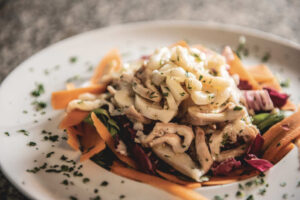 Se la cucina parte dalla tradizione è però sempre pronta a misurarsi con idee nuove. Accanto ai piatti di terra, dalla selvaggina (capriolo, daino e cinghiale) al peposo con polenta, convivono preparazioni più contemporanee e tante proposte di mare, diventate uno dei cavalli di battaglia del ristorante: dai classici – pesce all’isolana, grigliate miste, fritture – ai primi piatti creati con ingredienti dal carattere deciso, come tonno fresco, capperi di Pantelleria e pomodori secchi. La carta segue la stagionalità ma ogni settimana vengono proposti fuori menù che permettono alla cucina di esprimere libertà creativa. Anche sui dolci prevale la logica della genuinità: gran parte è fatta ‘in casa’, mentre per alcune preparazioni il locale si appoggia a pasticcerie della zona.