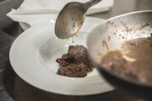 Un equilibrio che si riflette tanto nella cucina quanto nell’atmosfera della sala, dove l’accoglienza conserva un tratto informale ma mai trascurato. La cucina guarda alla sostanza, a una semplicità che affonda le radici nella tradizione contadina. «Ci piace la cucina gourmet – racconta Gargiani – ma la nostra idea è sempre stata quella di proporre piatti sinceri e ben fatti. Il nostro linguaggio resta quello della semplicità». Anche l’ambiente segue questa filosofia: informale e accogliente. L’idea è quella di far sentire chi entra come a cena a casa di amici.