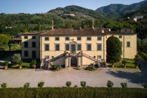 Tra gli spazi più amati c’è il giardino centrale, con i tre cipressi e la fontana che si affaccia sulla piana di Lucca: uno scenario iconico, spesso scelto per cerimonie civili e simboliche. Molto apprezzato anche il grande cedro secolare, sotto il quale si celebrano matrimoni immersi nella natura. Per gli interni, il gioiello è il Salone della Seta, antico piano nobile luminosissimo, con parquet, soffitti a cassettoni e pareti rivestite in seta, che può essere usato su richiesta per cerimonie intime o per la preparazione della sposa.