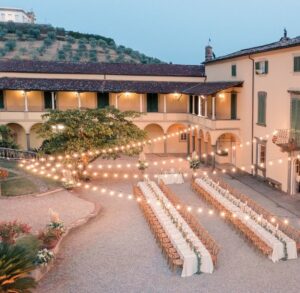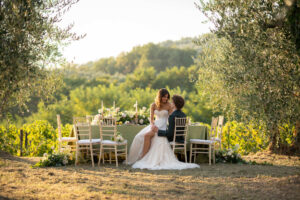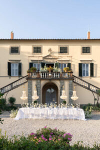 Fu proprio Elisa Baciocchi a dare un’impronta agricola alla tenuta, facendo costruire la cantina storica all’inizio dell’Ottocento e impiantando vitigni francesi, affiancati oggi ai vitigni autoctoni toscani. Una visione che Romina ha raccolto e portato avanti, trasformando la villa anche in un’azienda agricola biologica che produce vini e olio extravergine d’oliva, parte integrante dell’esperienza proposta agli ospiti e agli sposi.