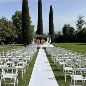 Dal 1986 la villa è tornata a vivere grazie alla famiglia Butori, che l’ha restaurata con rispetto e sensibilità, senza snaturarne l’anima. Oggi la gestione dei matrimoni e degli eventi è affidata in gran parte a Chiara, che accompagna le coppie passo dopo passo, dal primo sopralluogo fino al giorno delle nozze. Un lavoro fatto di ascolto, disponibilità e cura, che spesso dura anche un anno o più, soprattutto nel caso dei destination wedding. La Badiola non propone pacchetti preconfezionati: ogni matrimonio è diverso e costruito su misura. Gli sposi hanno a disposizione tutti gli spazi esterni e il piano terra della villa, con ampi giardini, saloni storici e scorci naturali che cambiano con le stagioni. La libertà di scelta è totale, supportata da una rete di fornitori locali selezionati negli anni, senza vincoli o partnership obbligate.