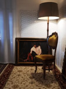 Mi giro intorno, vedo cavalletti con opere appena iniziate o altre quasi finite, ma a ognuna dedica sempre un po’ di tempo in più per aggiungere una pennellata, cercando di dare profondità o giocare con la luce. Niente è lasciato al caso. I tuoi dipinti a olio sembrano non solo raccontare uno stato d’animo, ma quasi essere una sorta di medicina per la tua anima. Cosa provi quando lavori sulla tela? “Per me è come tornare indietro nel tempo, immergermi in quell’epoca e lavorare alla maniera dei vecchi maestri. È stato proprio questo a farmi scattare qualcosa dentro e farmi capire che volevo continuare su questa strada e approfondirla. Infatti, ho iniziato a preparare i colori da solo, comprando i pigmenti e lavorandoli come si faceva un tempo. Da lì ho cominciato anche a sviluppare idee personali per i miei quadri. Adesso sto lavorando a un autoritratto a figura intera, in doppia figura, alto un metro per ottanta, che ho chiamato “Portae Inferi”. È un autoritratto in cui sono affiancato da una persona molto importante per me, qualcuno che è stato fondamentale in uno dei momenti più difficili della mia vita. Con questo quadro ho capito davvero cosa vorrò fare: trasmettere le mie emozioni e i miei stati d’animo in un’atmosfera elegante, usando tecniche antiche e tempi lenti. Ogni giorno guardo il quadro con occhi diversi, aggiungendo o togliendo colori e luci, e in quel processo sento anche la mia anima che guarisce un po’”.
