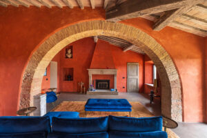 It is a complete restoration of the old farmhouse, cared for with meticulous attention. Every detail is the result of an in-depth study and a constant presence on site by the designers, who have followed the evolution of the work step by step, collaborating closely with highly qualified workers. Architect Monica Rossi proudly points out: “The synergy with local artisans and companies — from the construction company to the carpenter, up to the blacksmith — represents an essential value, built over time through the selection of realities capable of guaranteeing high quality standards and contributing to the creation of unique environments”.